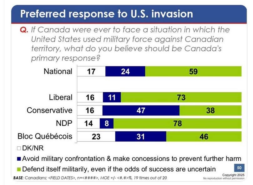 Yet, even with this firm sense of national self-definition, the Conservative Party struggles to align itself with these sentiments in a way that resonates broadly outside its core base. National polls show the Liberals under Mark Carney consistently leading or tied with the Conservatives, and importantly, Canadians trust Carney more than Conservative leader Pierre Poilievre to manage Canada–U.S. relations and economic sovereignty issues like tariffs.